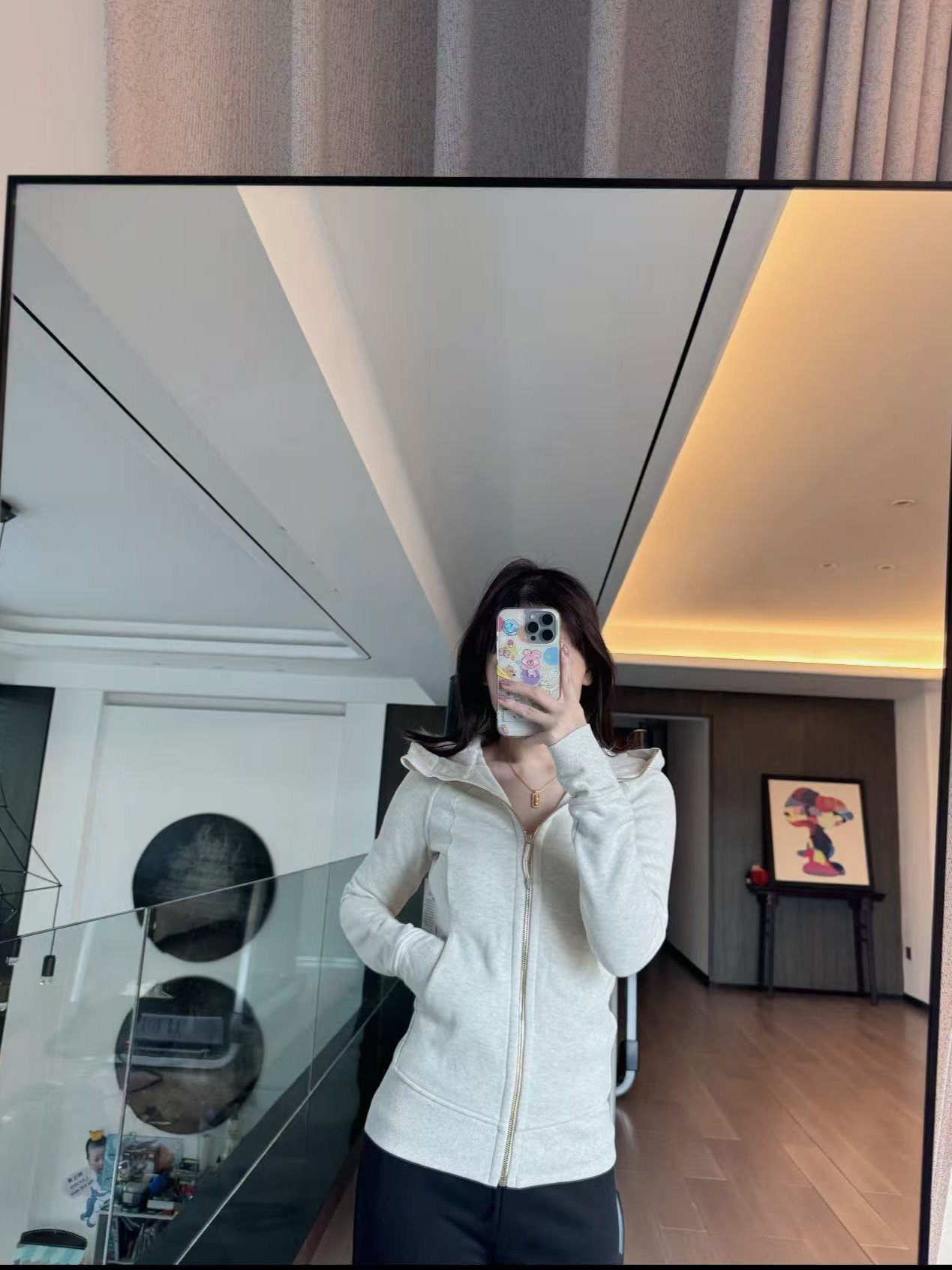 High Version Lulu Sports Yoga Sweatshirt with Headphone Hole, Slim Hooded Cardigan Jacket, Women's Velvet Warm Top