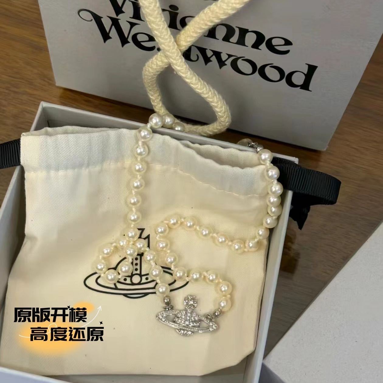 High Version of the West Queen Mother Saturn Pearl Necklace Female Niche Retro Planet Pearl Clavicle Chain Factory Wholesale Cross-border