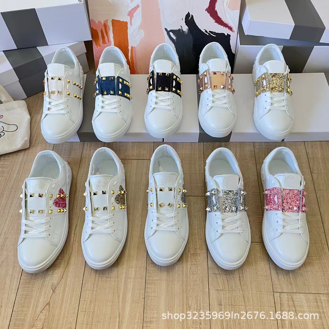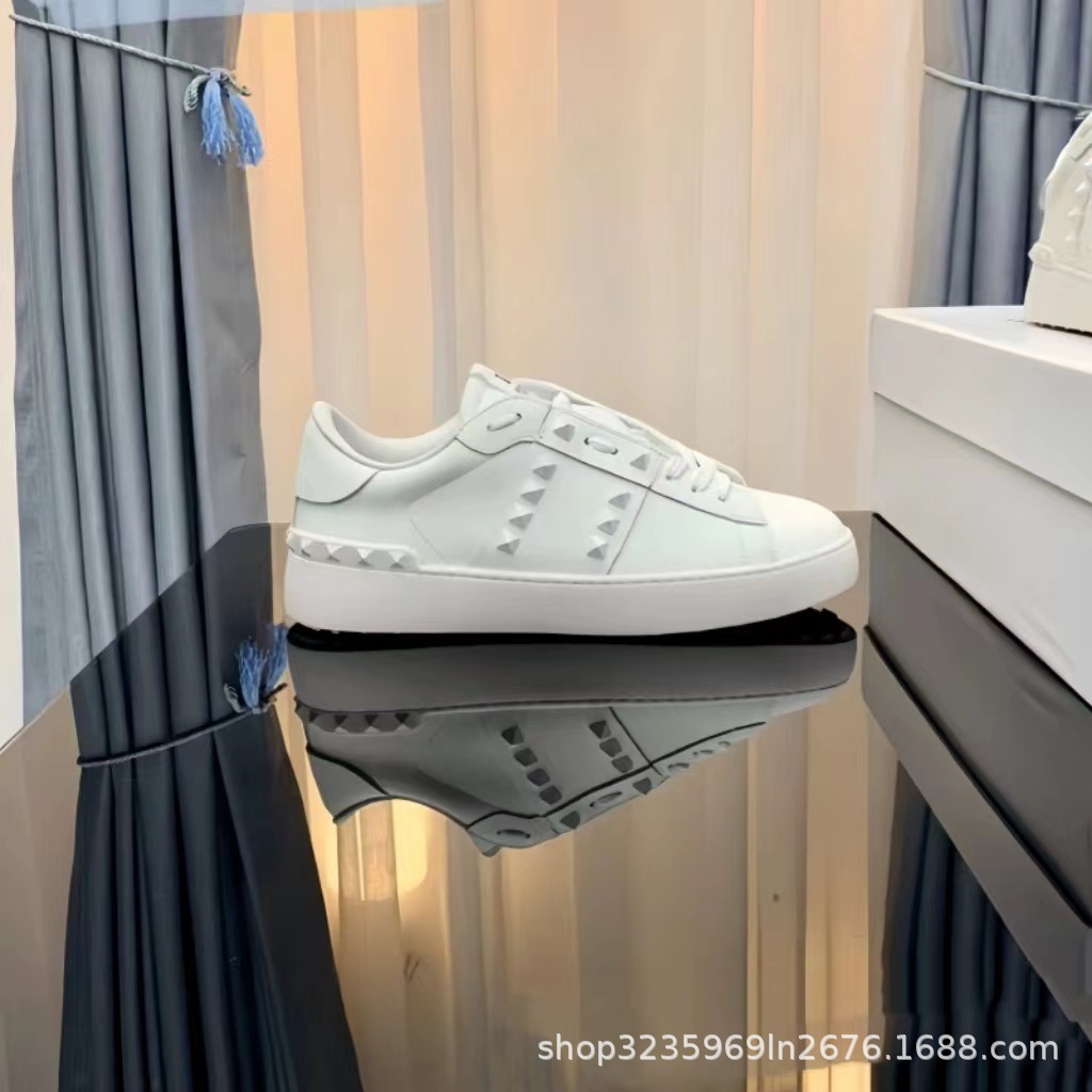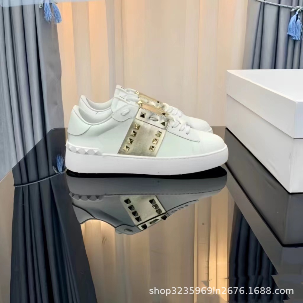 High Version V Home Warren Rivet White Shoes for Women 2024 Spring New Lace-Up Casual Sports Couple Sneakers Large Size