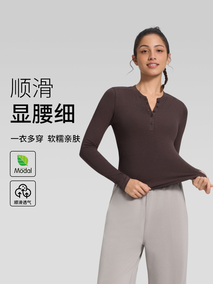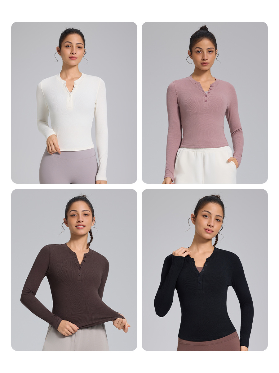 Hold Tight Long-Sleeved Yoga Clothes for Women, Slim-Fitting Henley Shirt, Soft and Breathable Fitness Clothes, Sports Tops, Muscle Base Layer