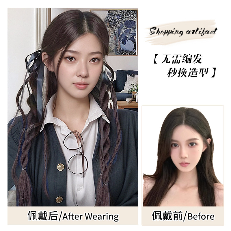 Hongxiu Preferred - Wig Braids for Women Ruth Same Style Bear Double Twist College Style Simulated Twisted Braids Double Ponytails