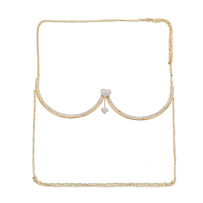 Hot-Selling Double Heart Pendant Rhinestone Chest Chain Fashion Women's Body Chain Jewelry Accessory Bodychain European and American Style