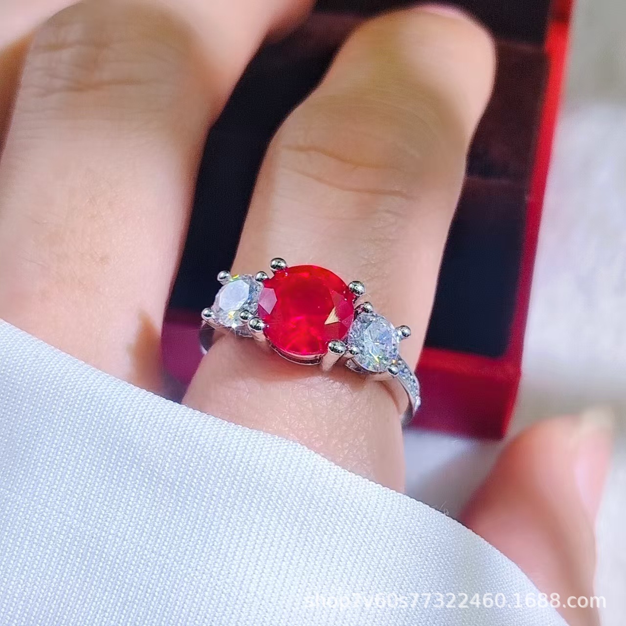 Hot Selling Jewelry 2 Carat Round Cultured Pigeon Blood Red Ruby Open Ring Women's Fashion Colorful Treasure Ring