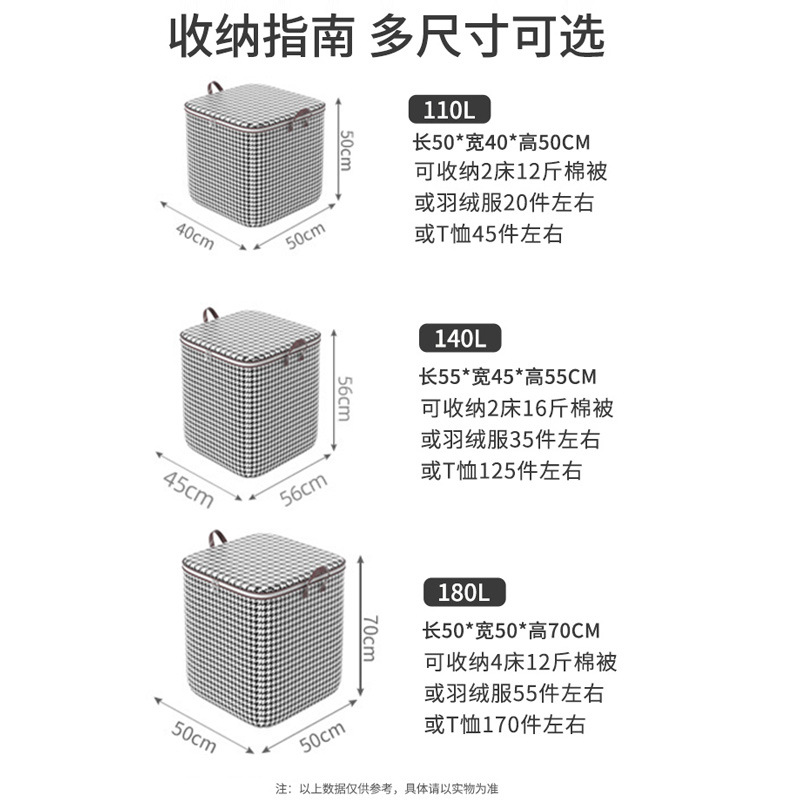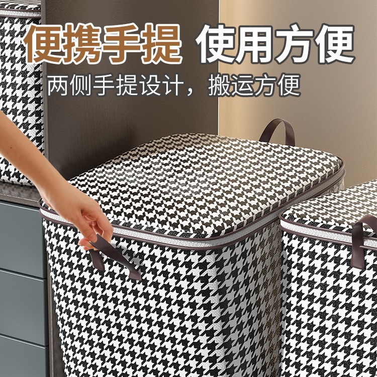 Houndstooth Quilt Bag Non-Woven Clothing Dust-Proof Quilt Storage Bag Wardrobe Covered Zipper Storage Bag