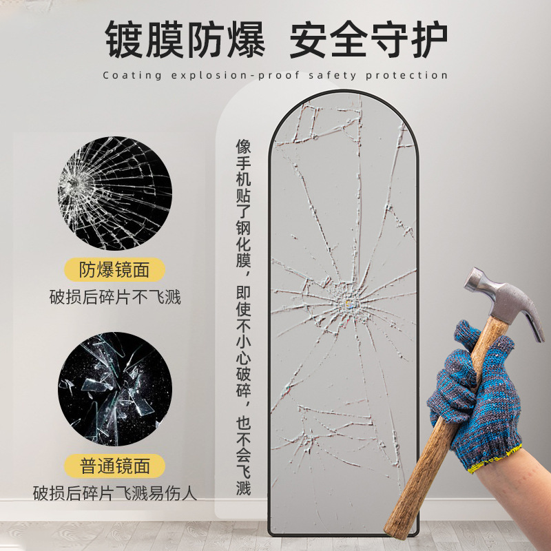 入户铝合金拱形穿衣镜子家用壁挂全身镜防爆卧室网红试衣落地镜