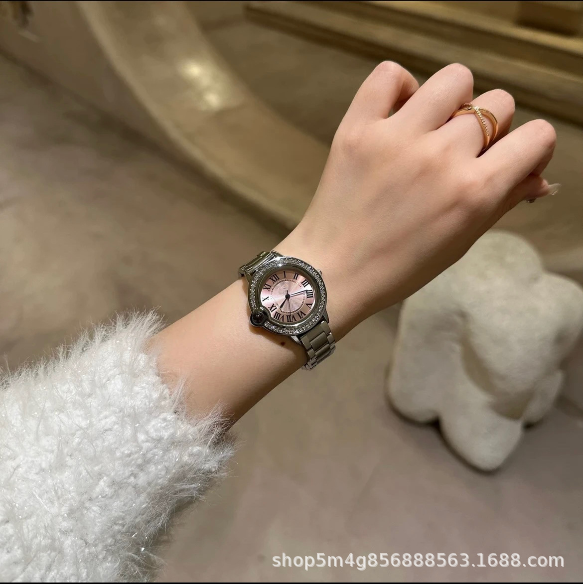 [I Love You in One Hundred Languages] Romantic Ice Rose Pink Balloon Fashionable Accessible Luxury Versatile Women's Watch