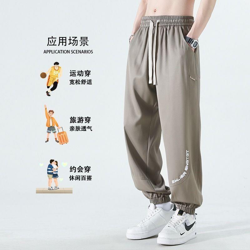 Ice Silk Ankle Pants Boys Summer Thin Quick-drying Sports Pants Large Size Loose Trendy Brand All-match Harlan Casual Pants