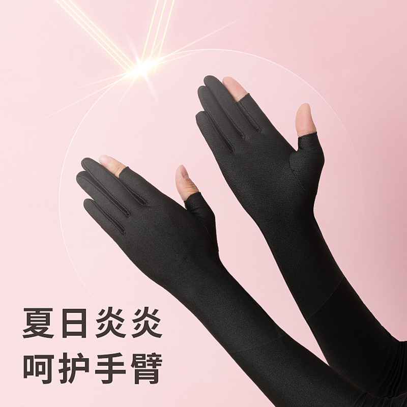 Ice Silk sun protection two finger gloves women's long driving arm protection oversleeve UV protection summer thin breathable sports riding