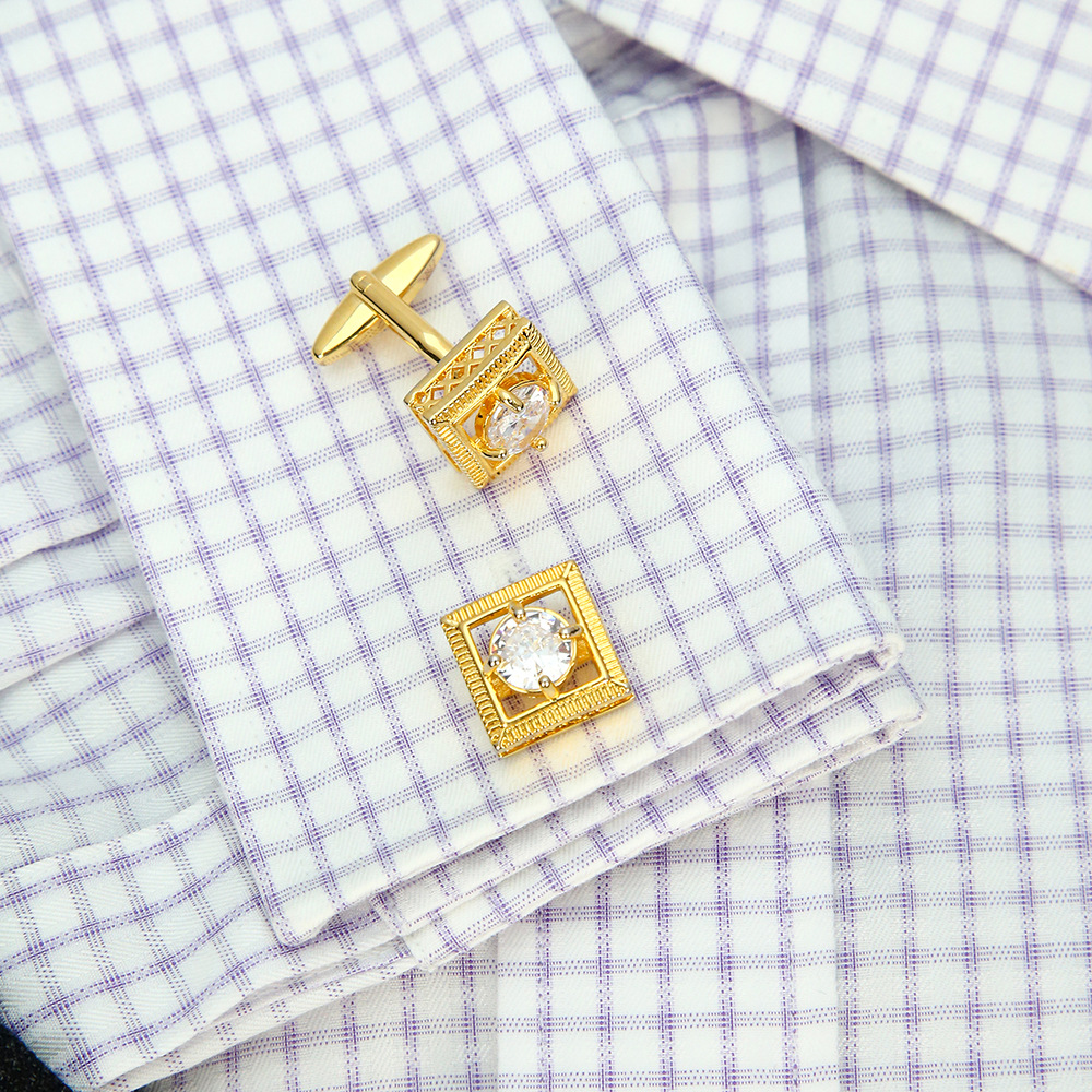 In-Stock Cufflinks for Men, Light Luxury Women's Swarovski Zircon French Shirt Gold Cuff Studs Cufflinks