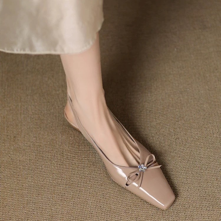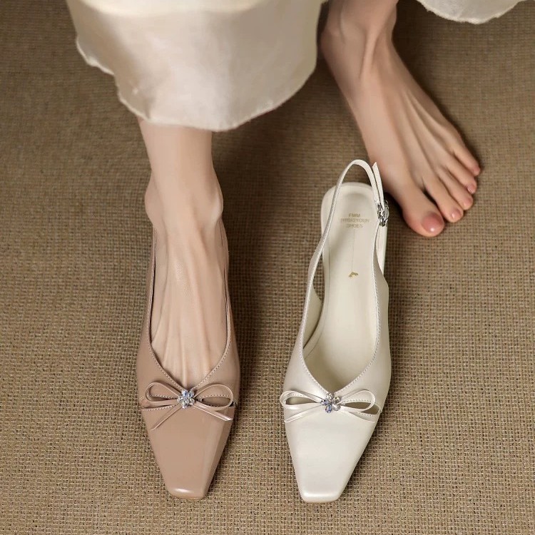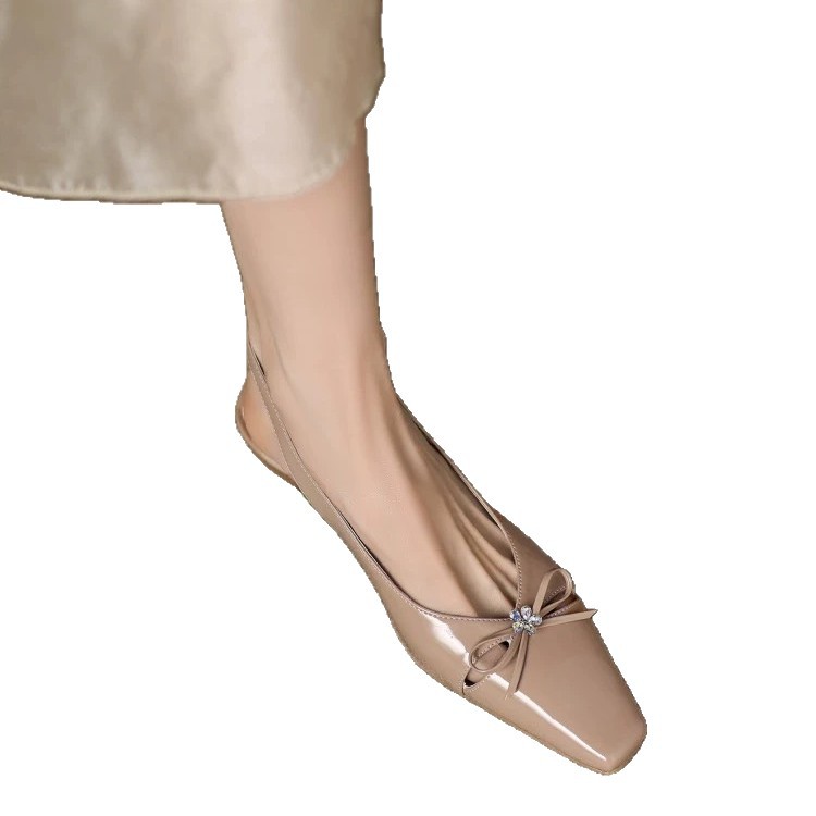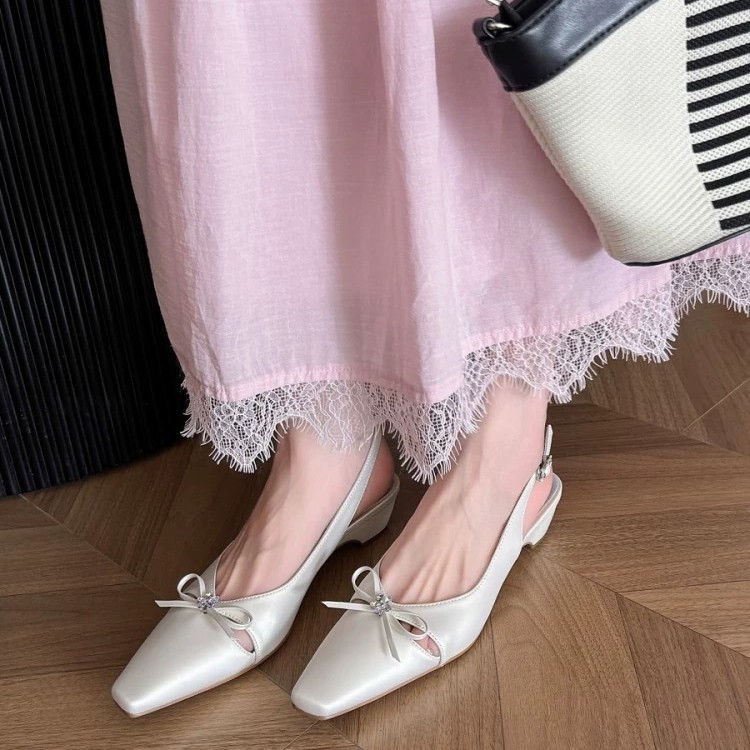 In-Stock Fairy Style Rhinestone Bowknot Open-Back Single Shoes French Low-Heeled Wedge Strap Closed-Toe Sandals for Women Summer