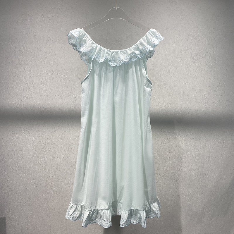 in stock Niche 2025 Spring and Summer New Hollow Embroidered Lace Nightdress Crewneck dress Women