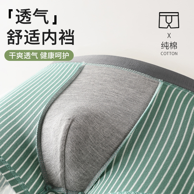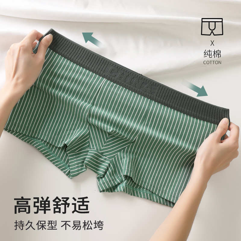 [Independent bag] men's cotton underwear striped fashion printed belt boys teenagers breathable boxer briefs