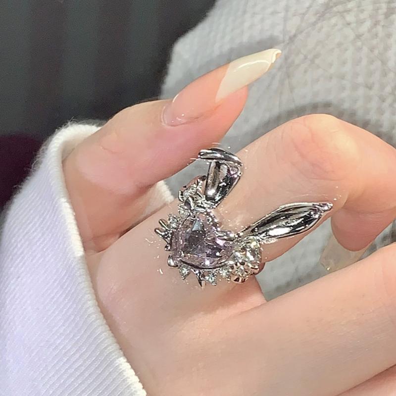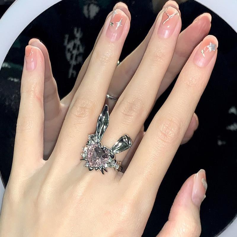 Index Finger Ring Rabbit Personalized Open Ring Female Accessible Luxury Elegant Popular Cartoon Cute Sweet Cool Style Diamond