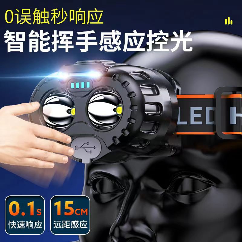 Induction LED long endurance lithium battery strong light super bright headlight outdoor night fishing lamp head-mounted miner's lamp flashlight