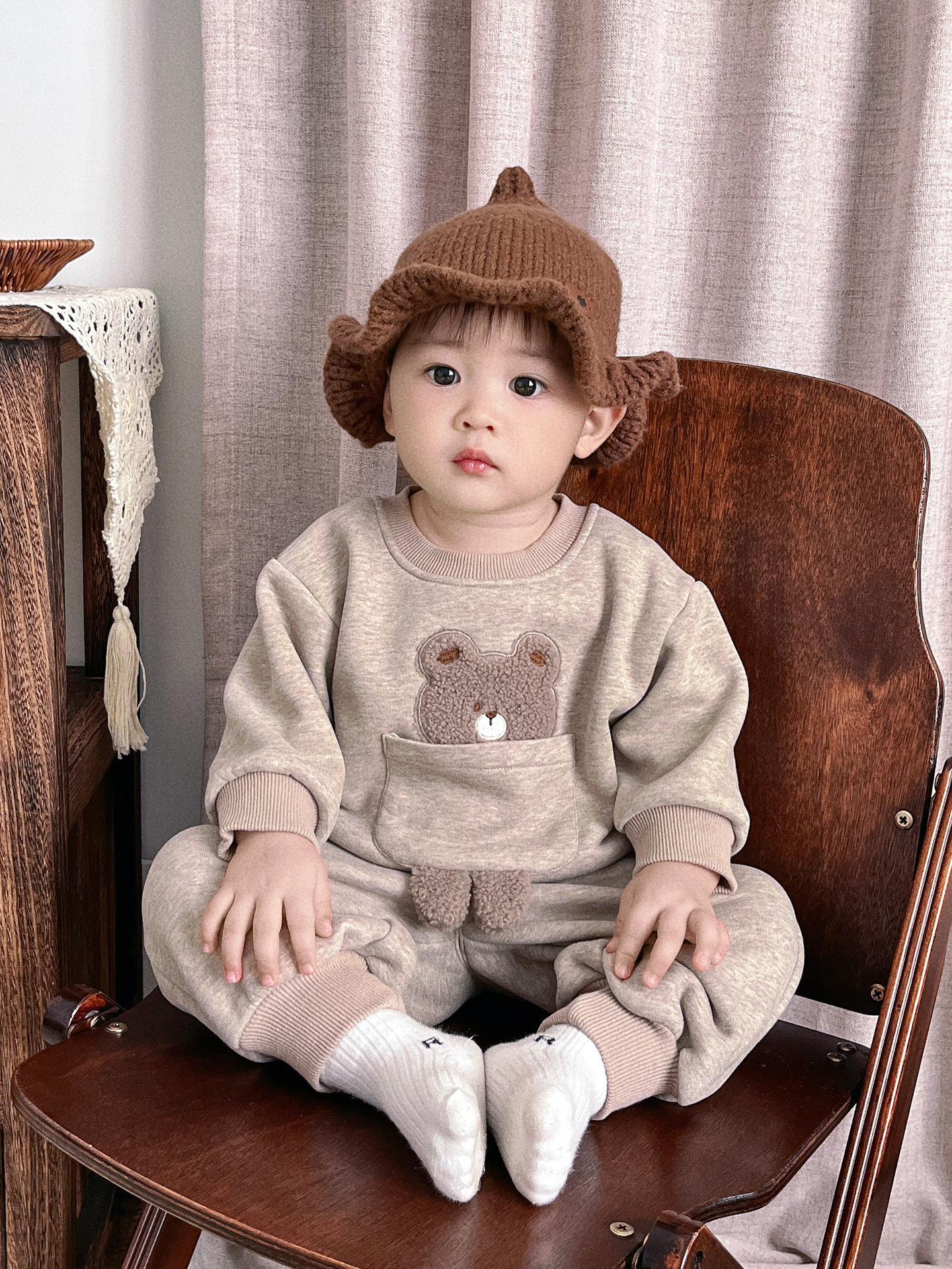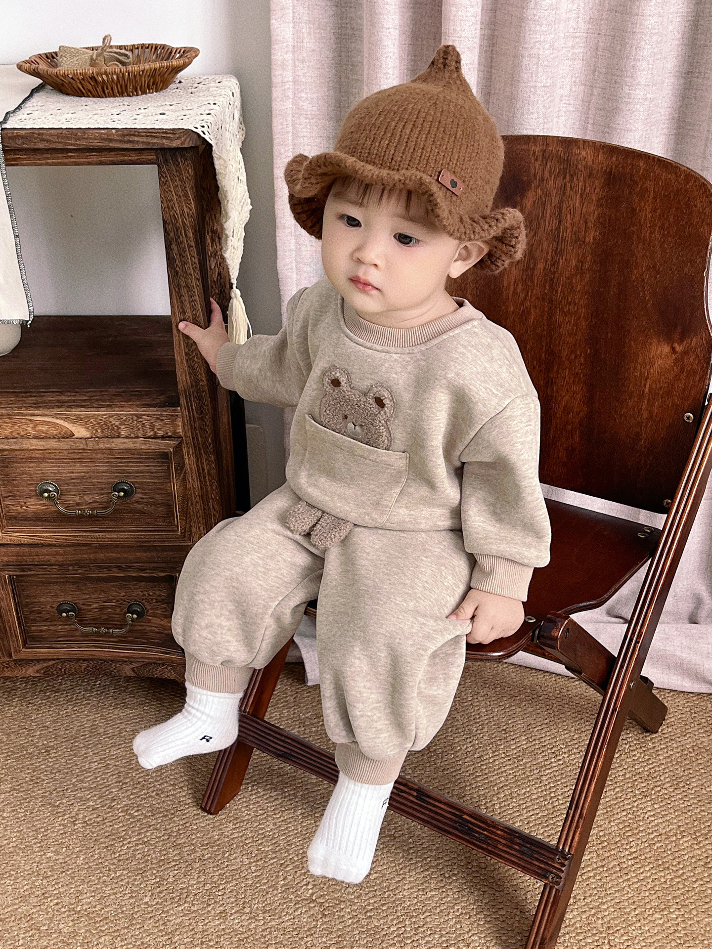 Infant Clothes, Autumn and Winter Velvet Quilted Suit, Cartoon Cute Baby Boy, Two-Piece Winter Outing Style Set