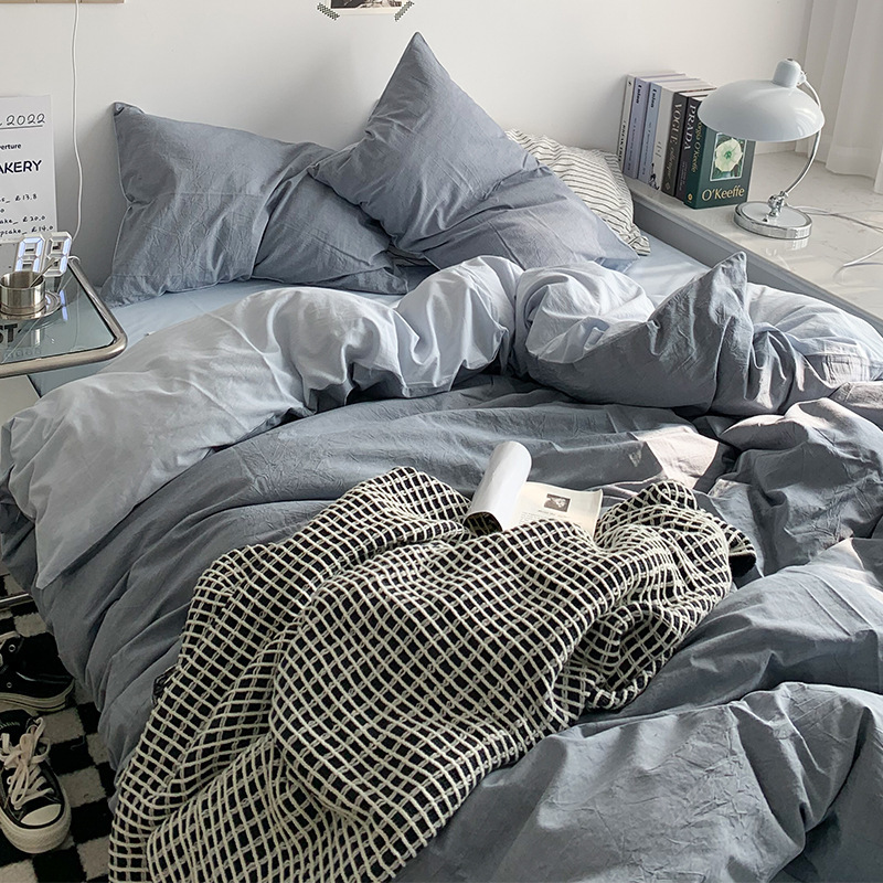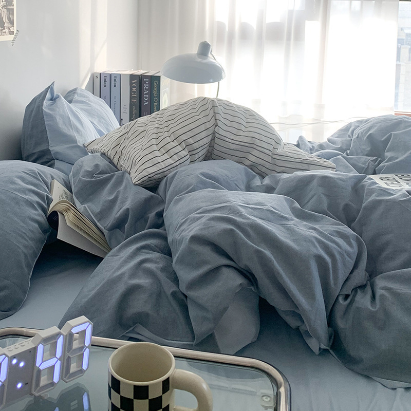 Ins Bedding Four-piece Set Washed Cotton Bed Sheet Quilt Cover Bed Cover Student Dormitory 4 Three-piece Set Wholesale