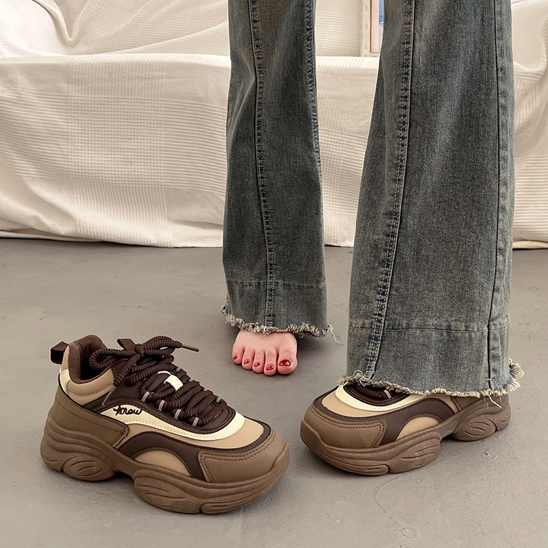 Ins K-Style New High-Top Dad Shoes for Women 2025 Autum Student Running Sports Thick Soles Increased Casual Ep907