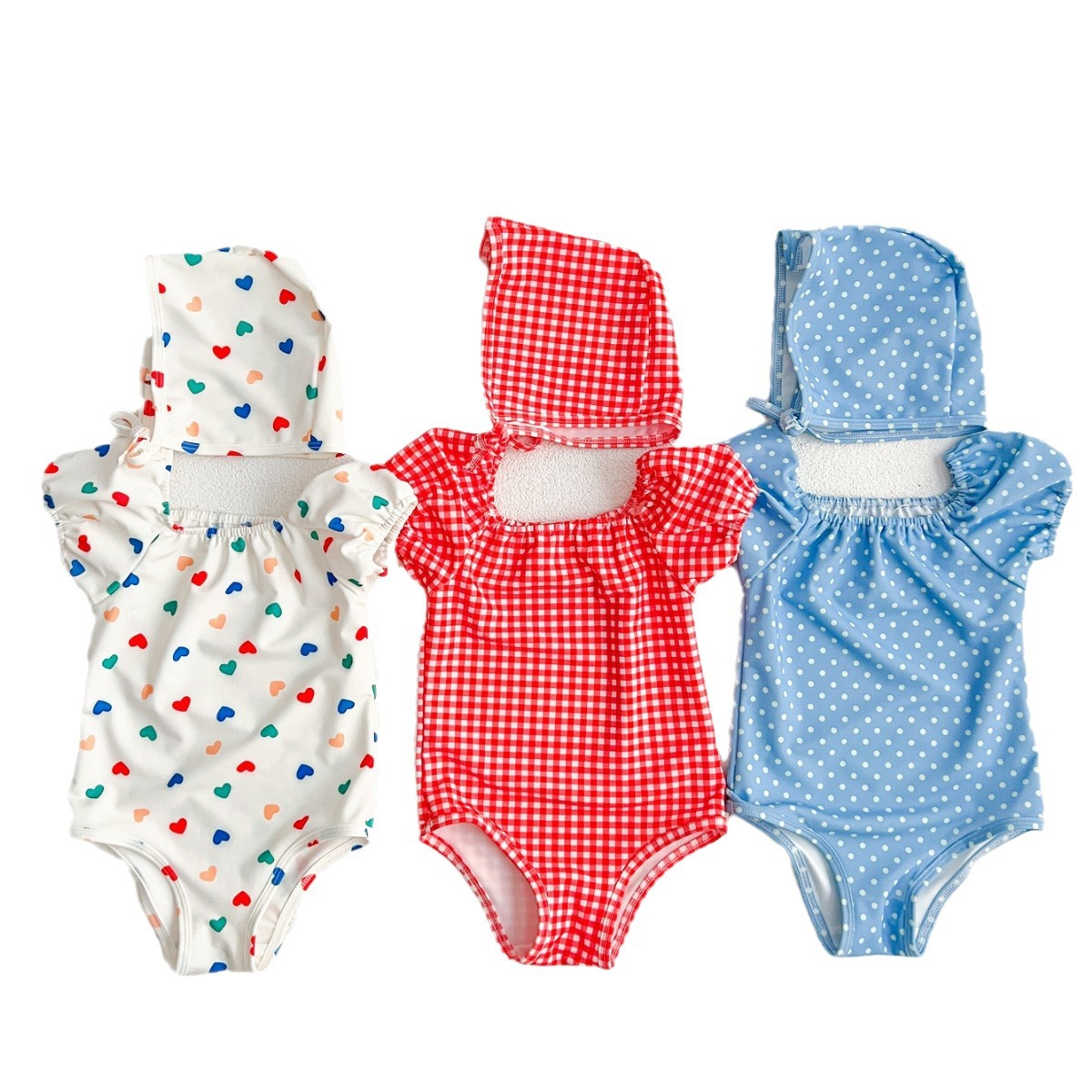 ins24 Summer Women's Baobao Toddler Swimsuit Swimsuit Swimming Cap Sling Belt Bag Ha-ha Suit Baby Girl Swimming Beach Suit All-in-one Suit