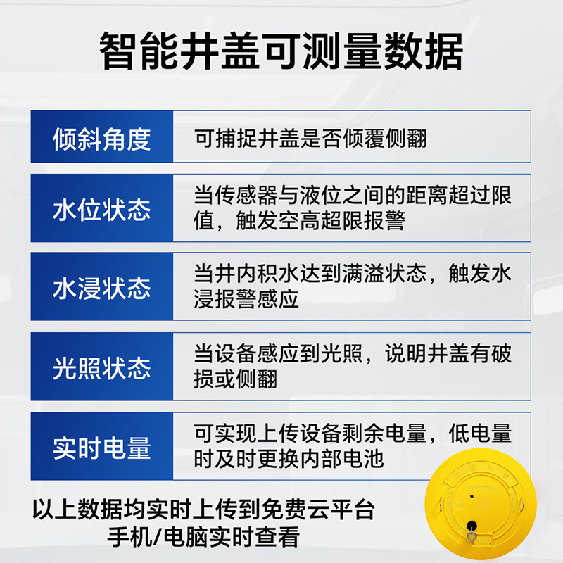 Intelligent Manhole Cover Movement Sensor, Liquid Level, Gas and Water Immersion Monitoring, Smart Electronic Lock, Power Manhole Monitoring and Alarm
