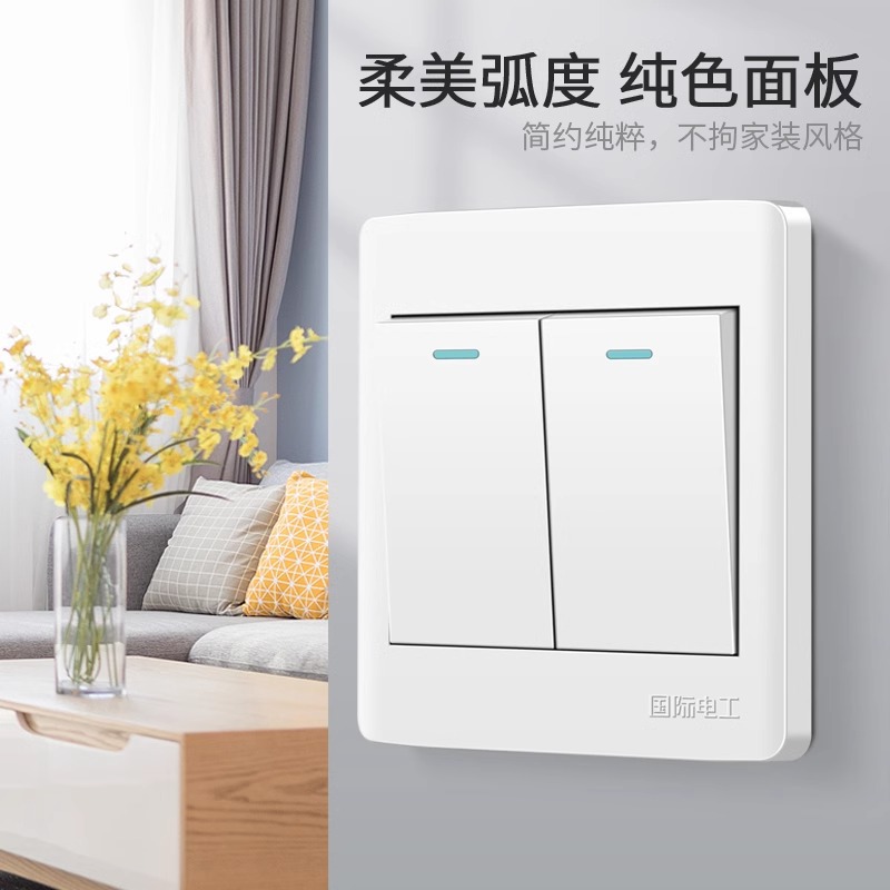 International Electric Household Double-opening Double-control Switch Panel with Fluorescent Two-opening Double-control Switch Two-position with Luminous