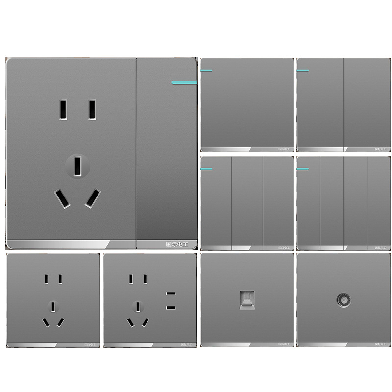 International Electrician Household Switch 86 Type Wall Power Concealed Gray Porous One-Open Five-Hole Switch Socket Panel
