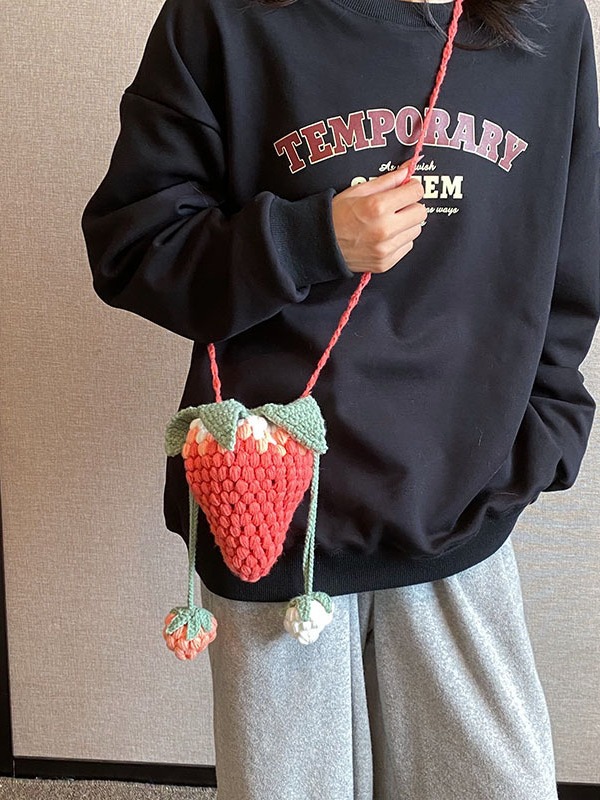 Internet Celebrity Autumn and Winter Odd and Odd Crossbody Mini Bag Girls Crochet Cute Hand-woven Strawberry Knitted Bag