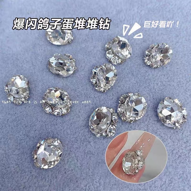 Internet Celebrity Explosions Pigeon Egg Nail Art Pile Drill Finished Super Flash Crystal Denier Oval White Diamond Ball Nail Drill Jewelry