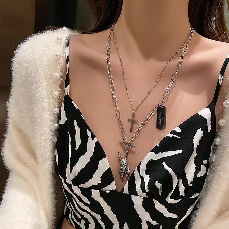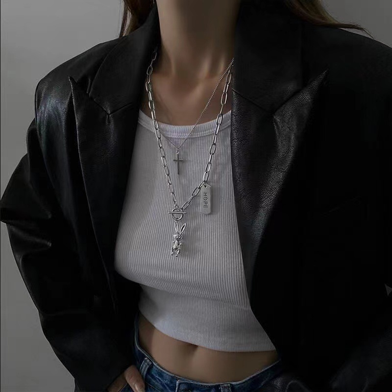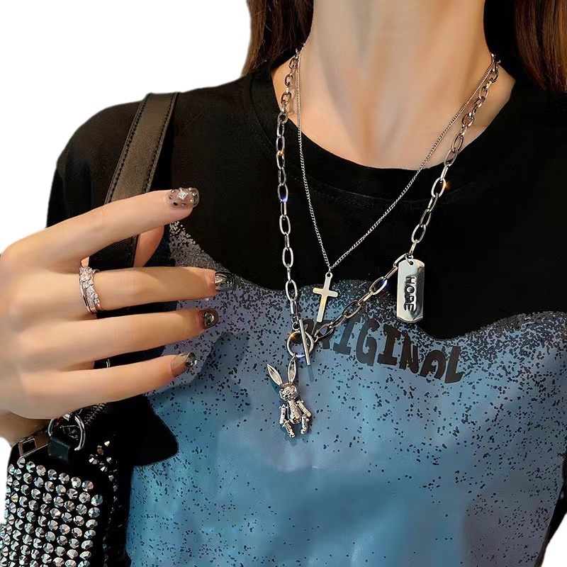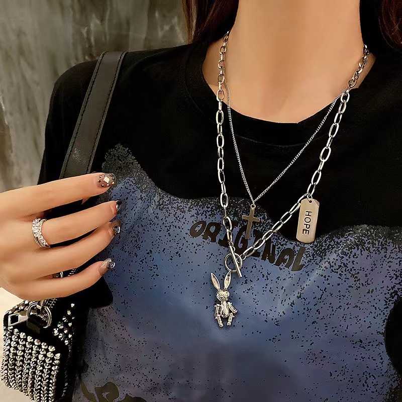 Internet Celebrity Three-piece Activity Rabbit Necklace Women's Ins Metal Pendant Multi-layer Long All-match Woolen Chain Men's Hip-hop