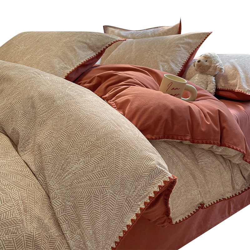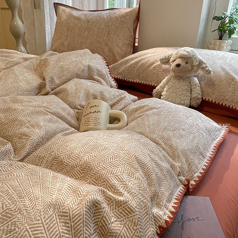Internet Celebrous Shop Autumn and Winter Thickened Cotton Sanding Shell Side Four-piece Set Cotton Warm Quilt Cover Bedding