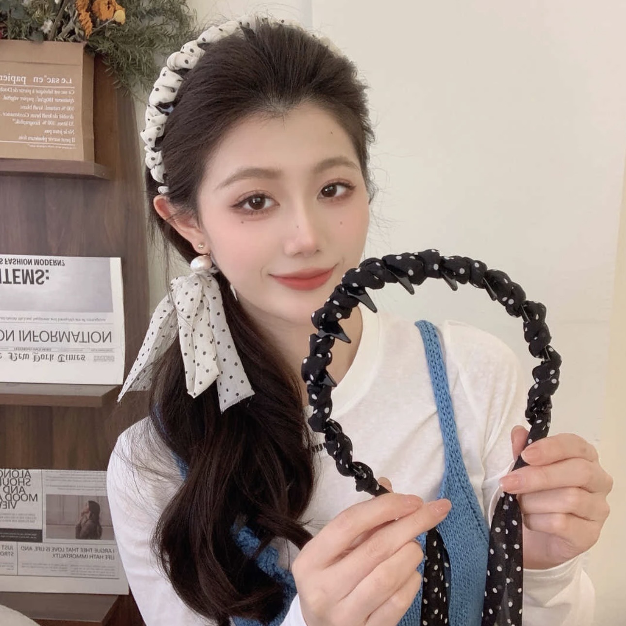 Internet-famous Wave Toothed Hair Band Women's High Cranial Top High-grade Twist Braid Wave Dot Hair Band Tie Hair Ribbon Early Spring Accessories