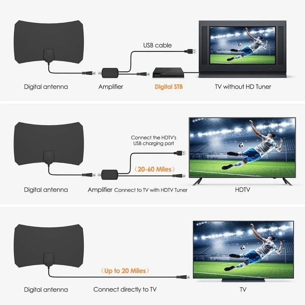 1800 Mile Digital Tv Antenna Dvb-T2 Hd with Amplifier Signal Receiver Cross-Border Hot Sale