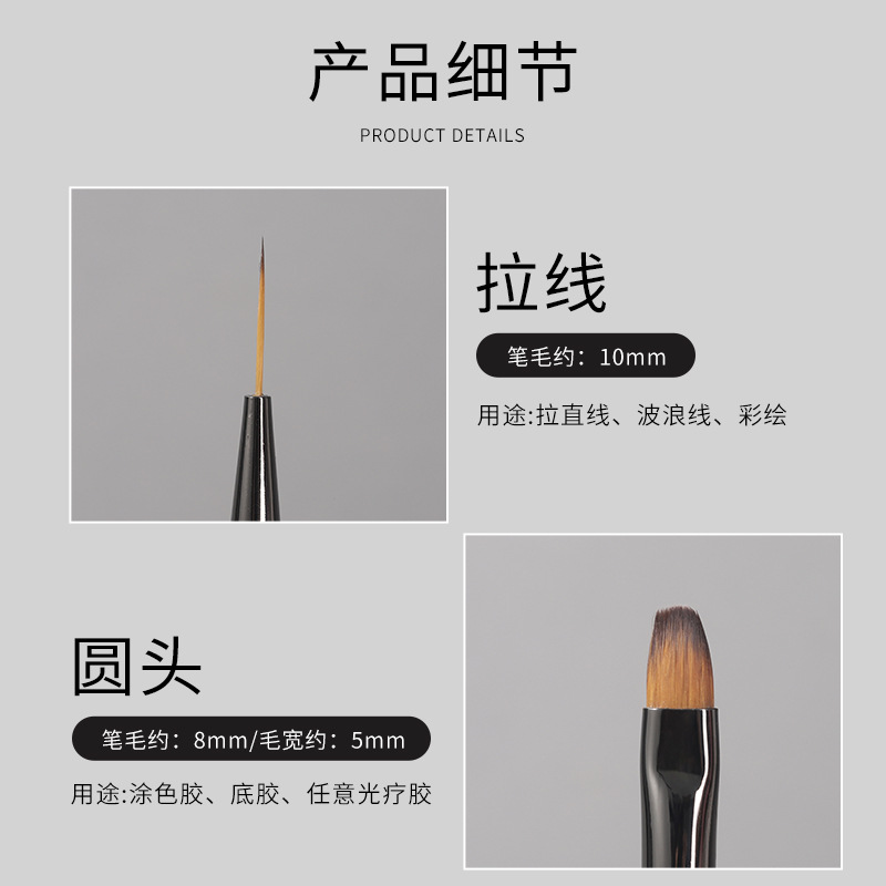 Japanese-style double-headed construction pen nail painting drawing pen round head extension phototherapy pen brush nail salon tools