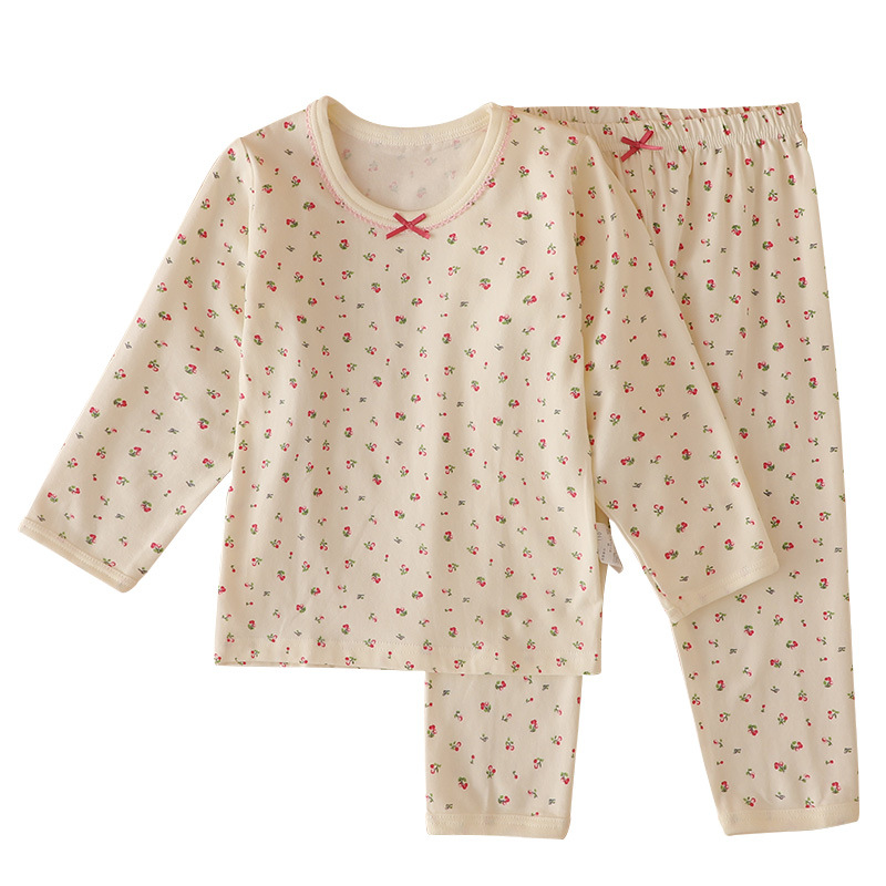 Japanese Style Girls' Home Clothes suit Pure Cotton Four Seasons Thin Long-sleeved Trousers for Baby Girls and Girls' Pajamas Sweat-absorbent Category A