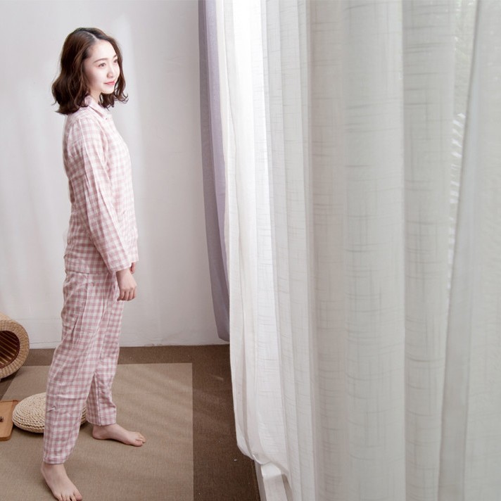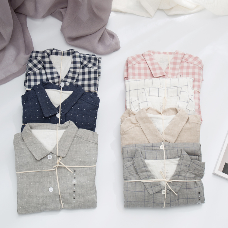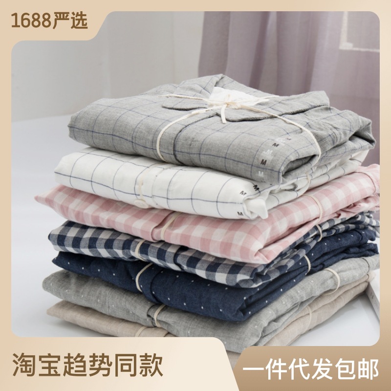Japanese-style Printed Home Clothes Good Double-layer Yarn All-cotton Pajamas for Men and Women Casual Wearable Outer Wearable Plaid Without Side Seam