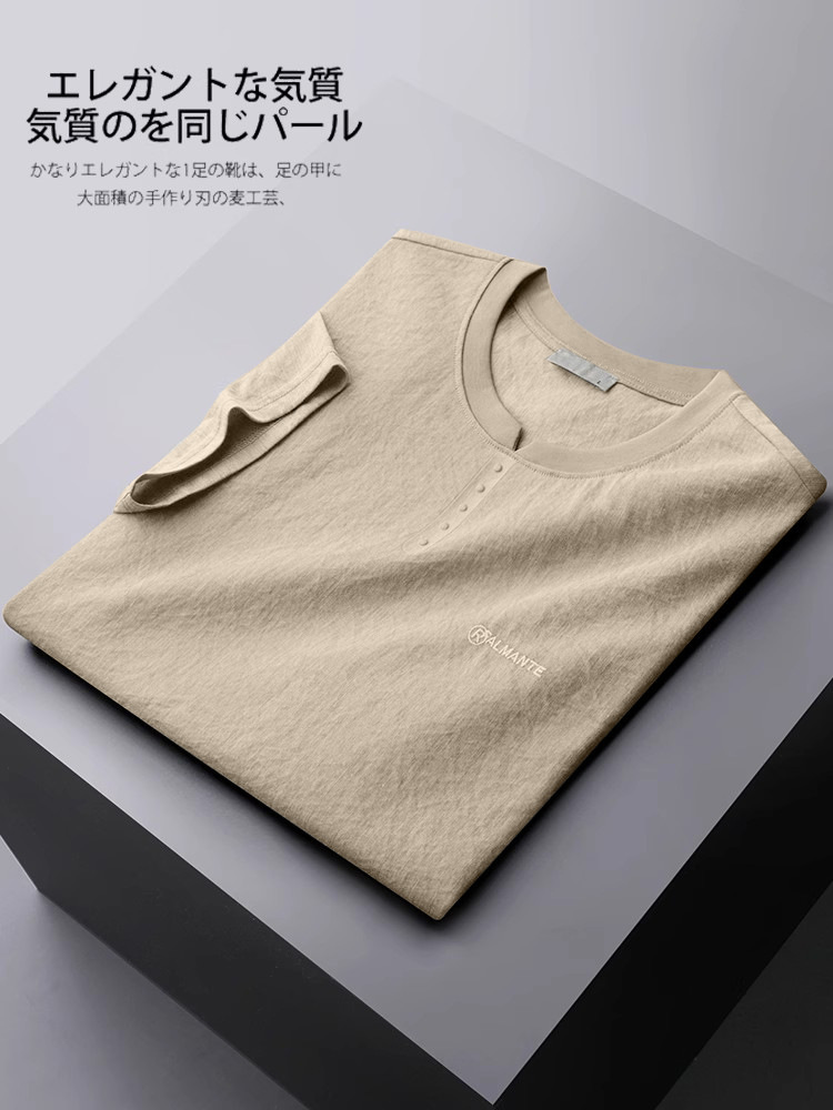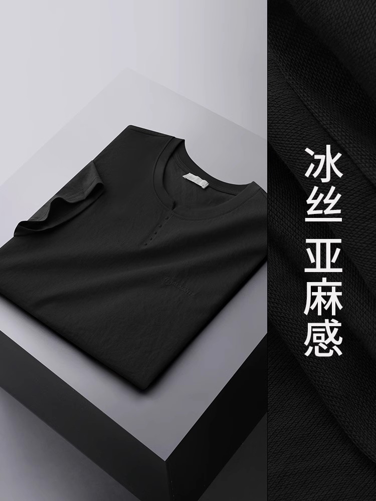 Japanese Style Imitation Cotton and Linen Embroidered Short-Sleeved Men's T-Shirt 2024 Summer Ice Silk Breathable Youth Half-Sleeved Casual Top Thin