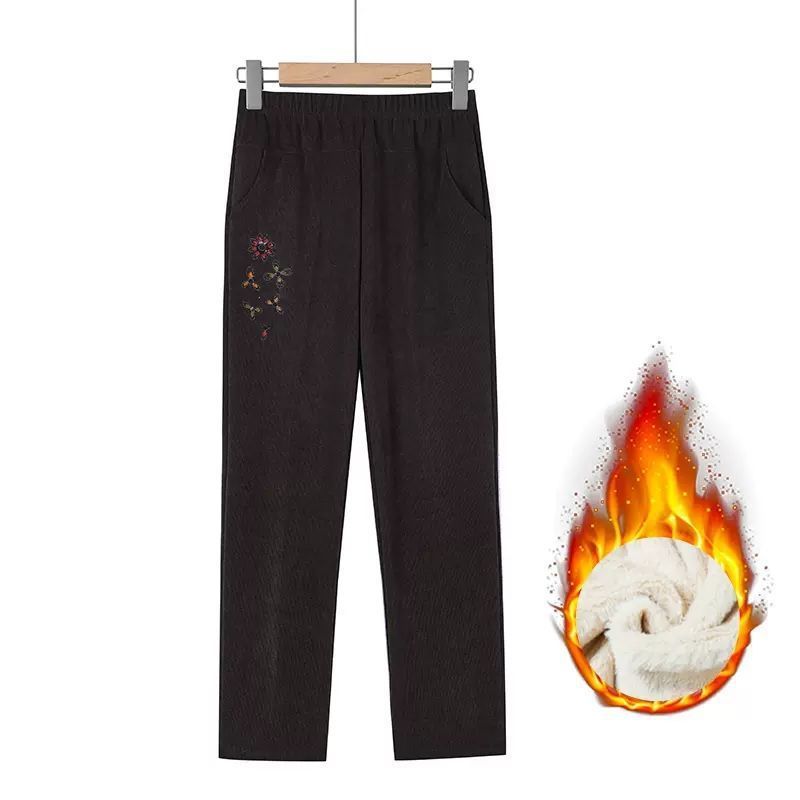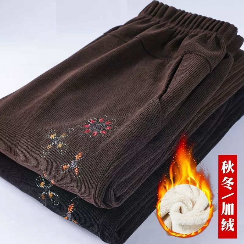 Jinbukang Middle-aged and Elderly Women's Pants Autumn and Winter Plus Size Mother fleece-lined Thickened High Waist Velvet Warm Leisure