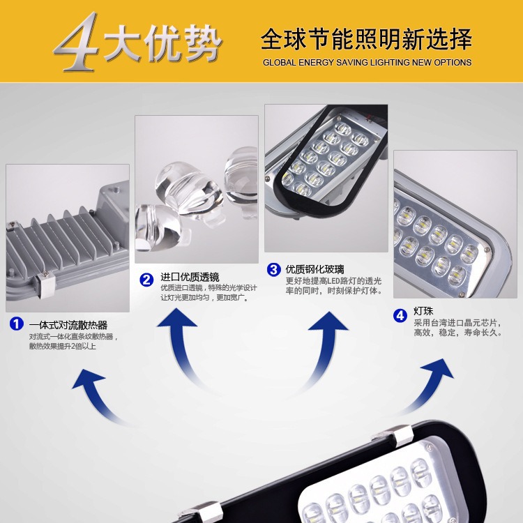 Jindou LED outdoor street light 220v super bright commercial power new rural pick-up arm street light head stadium high pole light square light