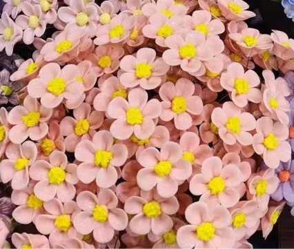 Shipped in random single layers (one piece is one flower, with pole and adhesive strips)