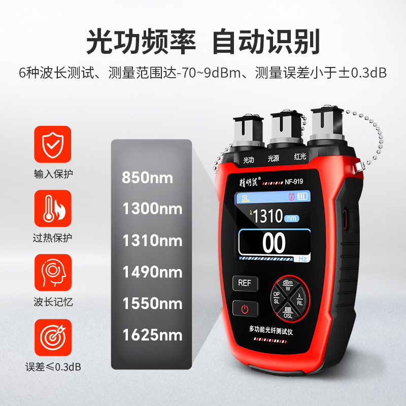Jingming mouse NF-919 multi-function optical fiber tester optical power meter stable light source red all-in-one machine three-in-one