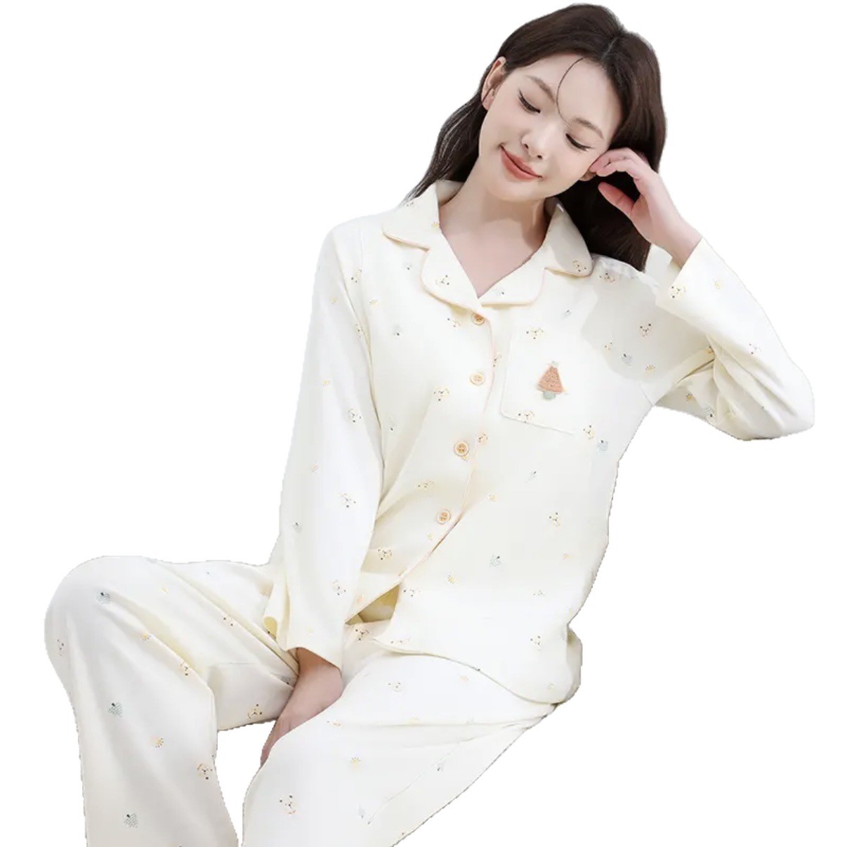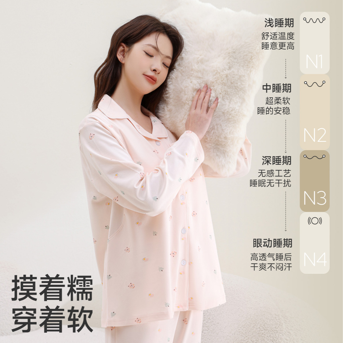 Jingqi Maternity Pajamas for Winter, Pure Cotton, Sweat-Absorbent Nursing Sleepwear, Postpartum Breastfeeding Maternity Autumn Homewear Set