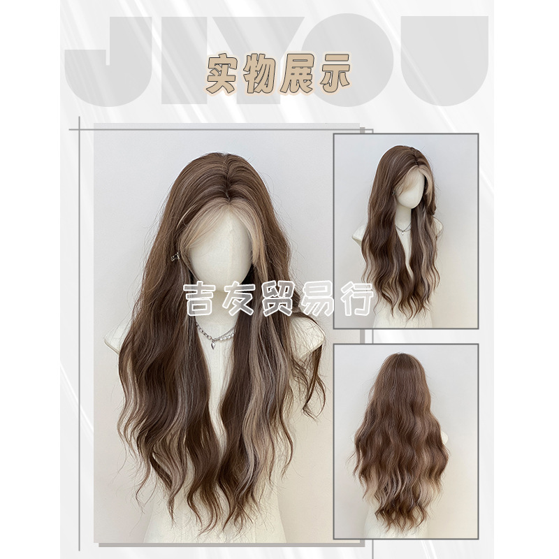 Jiyou Trade Line Wig Small Forehead Lace Popular with Goods List American Asian Style Gray Gold Highlights for Women with Long Hair