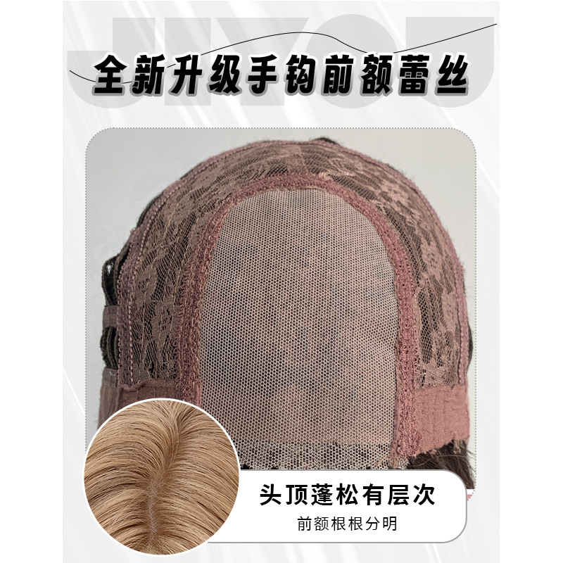 Jiyou Trade Wig Small Lace Belt Goods List Daily Sand Golden Long Hair Straight Hair with Full Head Cover