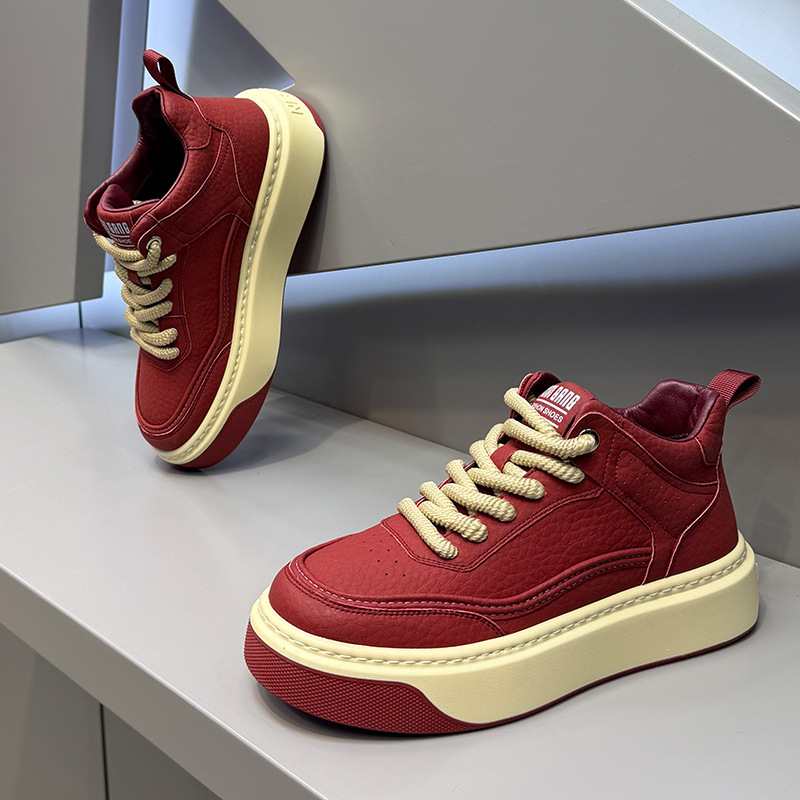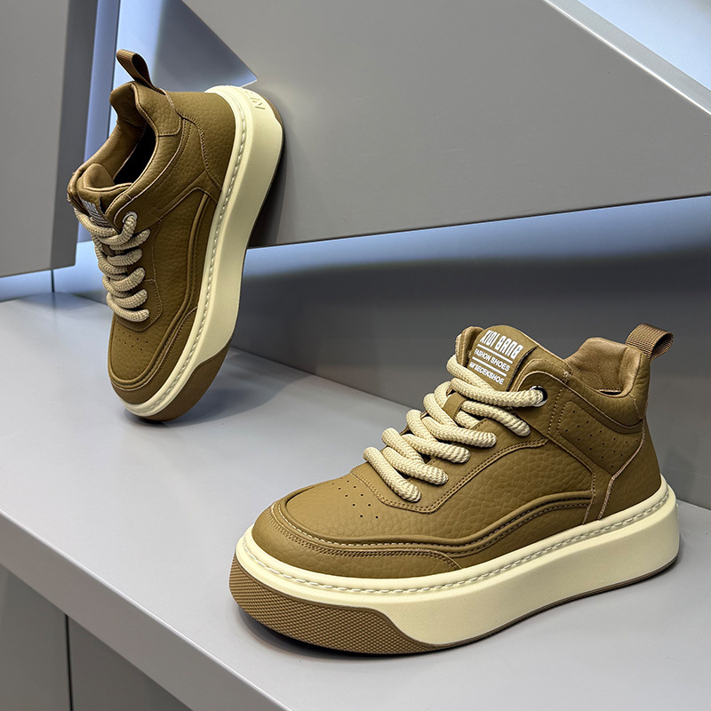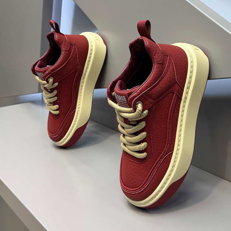 Jj Men's Shoes 2025 Autumn and Winter Fashionable and Versatile Thick-Soled Low-Cut Sneakers Genuine Leather Covered with Single Cotton Same Style Lace-Up Casual