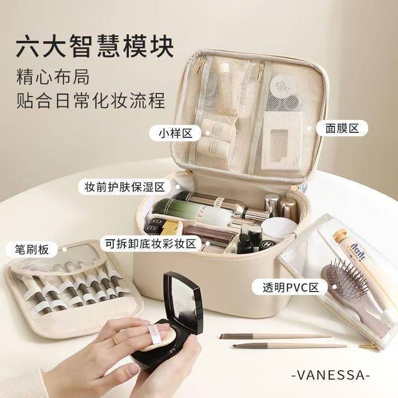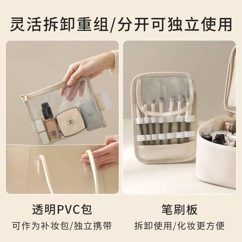 Juandie Large-Capacity Portable Cosmetic Bag Pu+Tpu Right-Angle Storage Box Ins-Style Travel Toiletry Bag