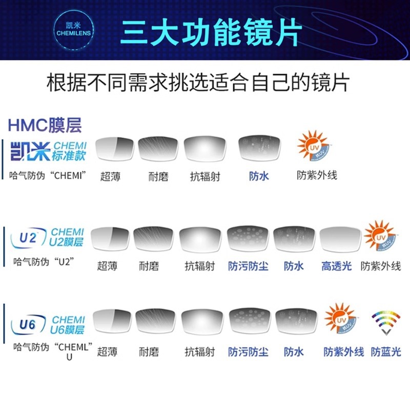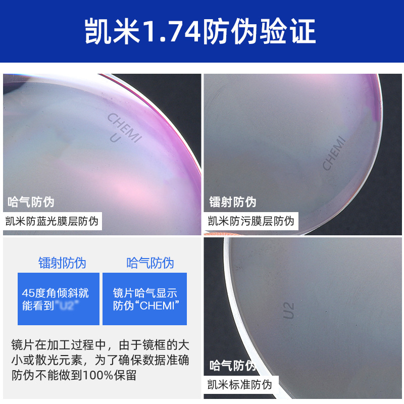 Kemi u6 Jin Gang High Myopia 1.67 Lens Anti-blue Resin Double Non-u2 Glasses Danyang Glasses Factory