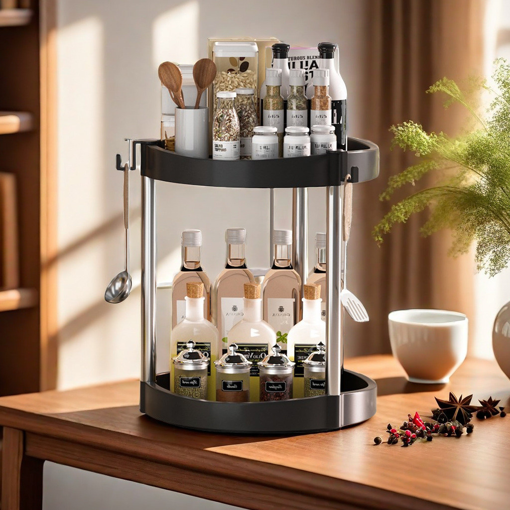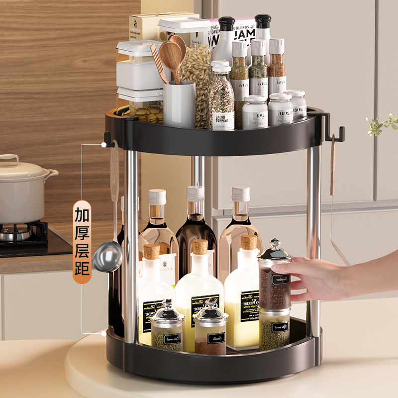 Kitchen Rack Double-Layer Rotatable Seasoning Supplies Utensils Multi-Layer Rack for Sundries Kitchen Storage Starting from One Piece