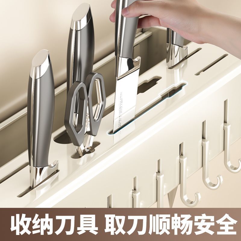 Kitchen Rack Wall-Mounted Punch-Free Multi-Functional Knife Cutting Board Pot Lid Chopstick Cage Chopstick Storage Storage Knife Holder