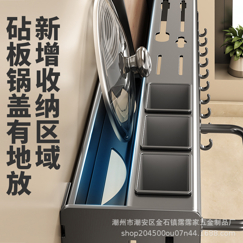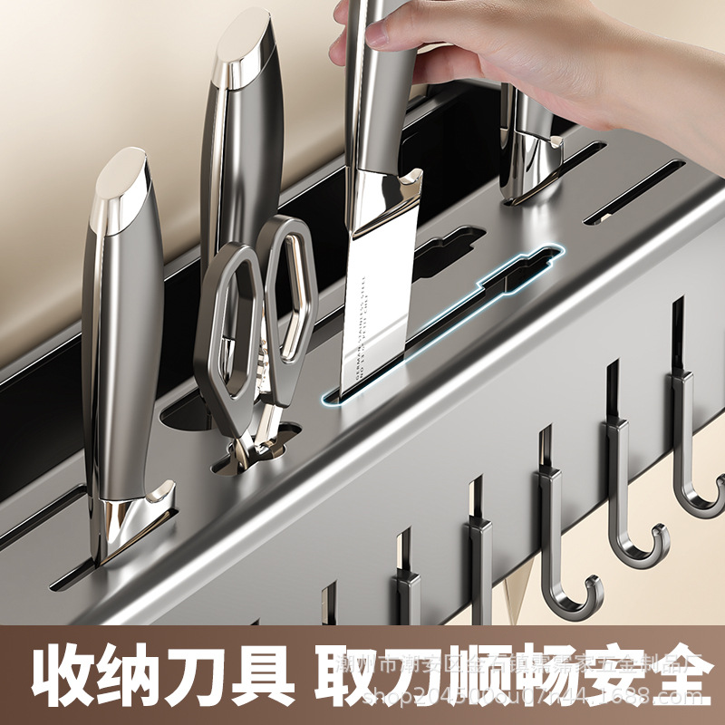 Kitchen Rack Wall-Mounted Punch-Free Multi-Functional Knife Cutting Board Pot Lid Chopstick Cage Chopstick Storage Storage Knife Holder