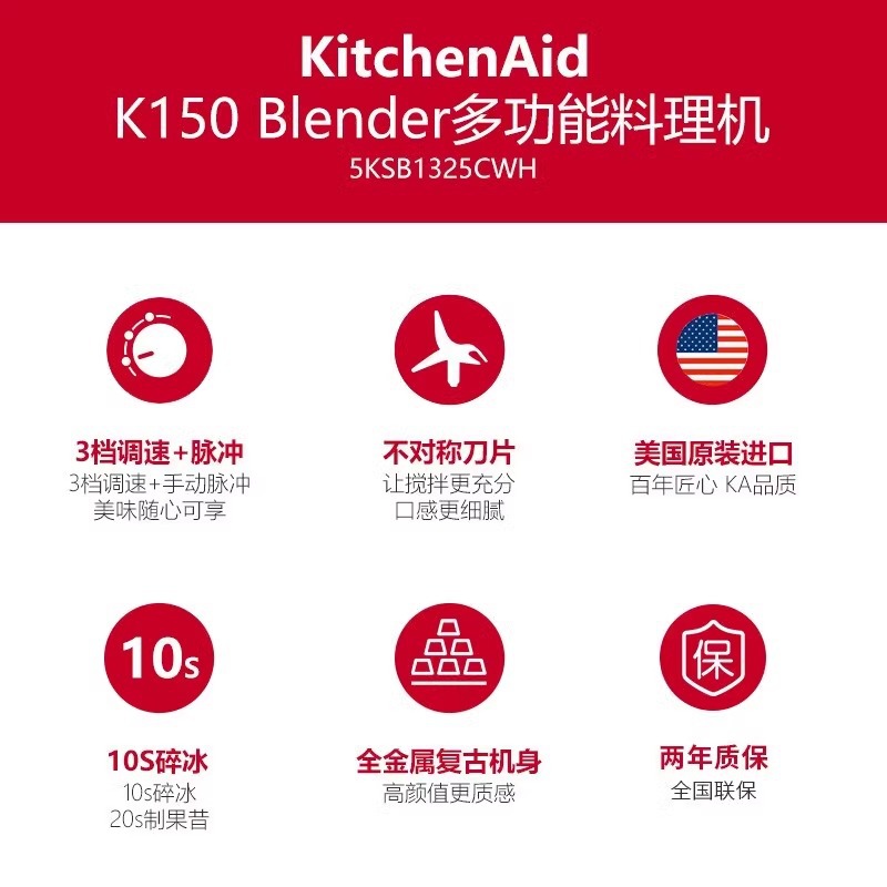 Carefully Selected Kitchenaid Imported Blender, Multifunctional Household Food Processor for Crushing Ice and Making Baby Food 1325