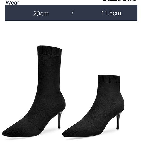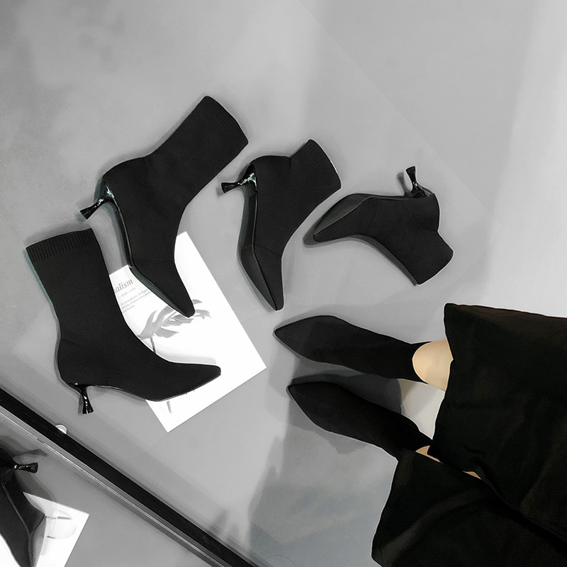 Knitted High-Top Sock Boots for Women Mid-Calf 2025 Spring New Korean Style Versatile Thick Heel Short Boots Thin Elastic Slim Boots